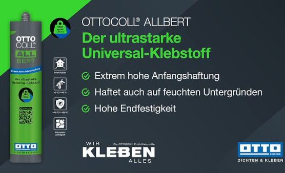Entdecken Sie ALLBERT von OTTO-CHEMIE, Ihren Partner für hochleistungsfähige Verklebungen in Industrie und Heimwerken. Mit seiner revolutionären Formel bietet ALLBERT eine sofortige, starke Anfangshaftung und eine dauerhafte Endfestigkeit, ideal für anspruchsvolle Anwendungen auf feuchten und trockenen Oberflächen.