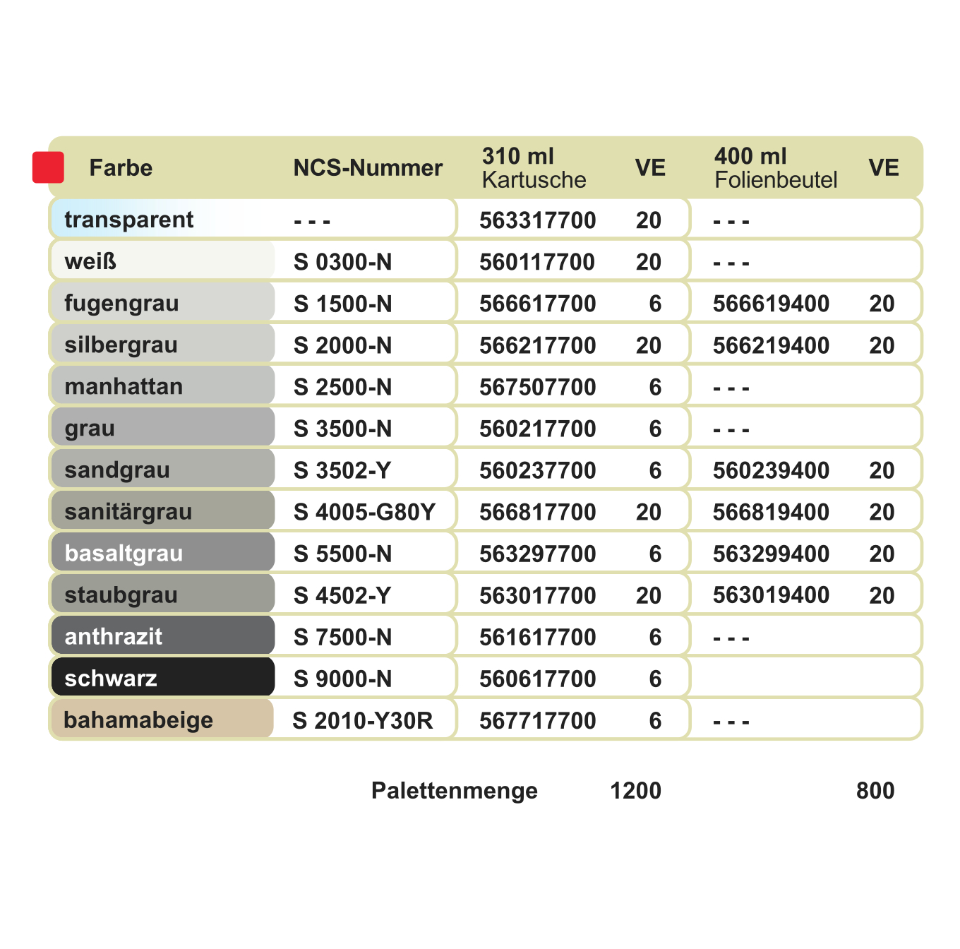- Härtungssystem: essigsauer / acetat